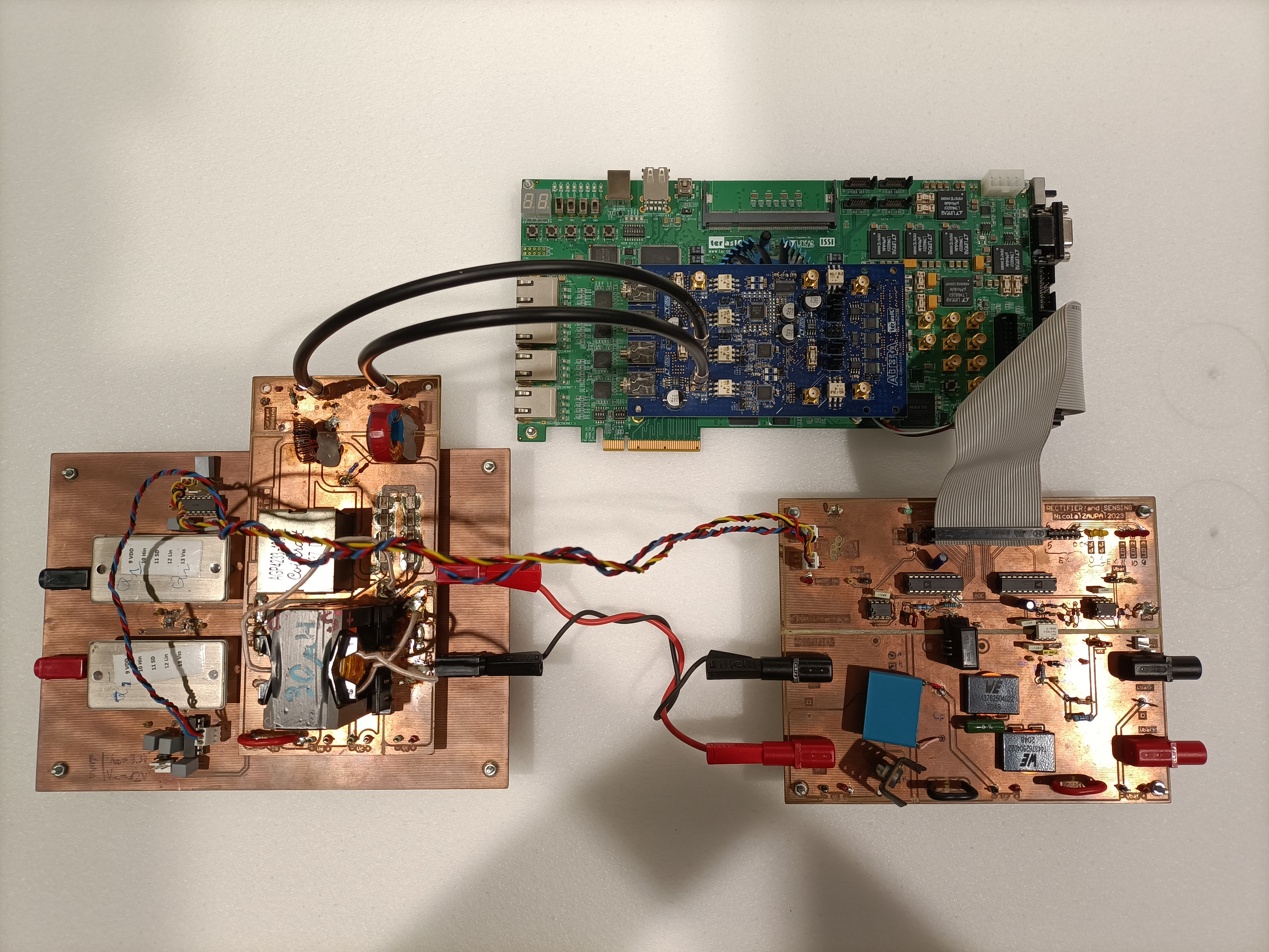 When increasing the input voltage, the resonant tank start glitching (switching \(\sigma\) when not expected). I tried to extend the regularization time in the control: no difference. For the asymmetry for low \(\varphi\) the problem is coming from the current sensing that is introducing an asymmetric scaling. Trying to solve this by connecting two resistors directly to the output of the signal transformer (there are four 49.9Ohm resistors that connect the transformer to the ADC): this hasn’t solved the problem, even, it seems to amplify more the noise. Just some extra work since the layout was more complicated than expected.